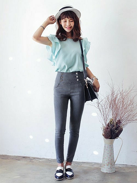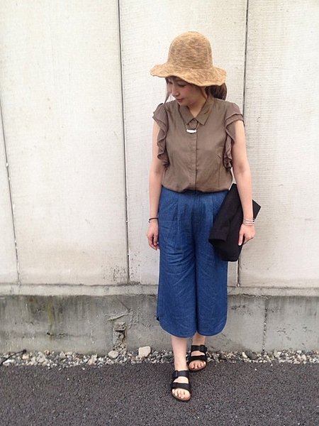 フリルスリーブにガウチョパンツで