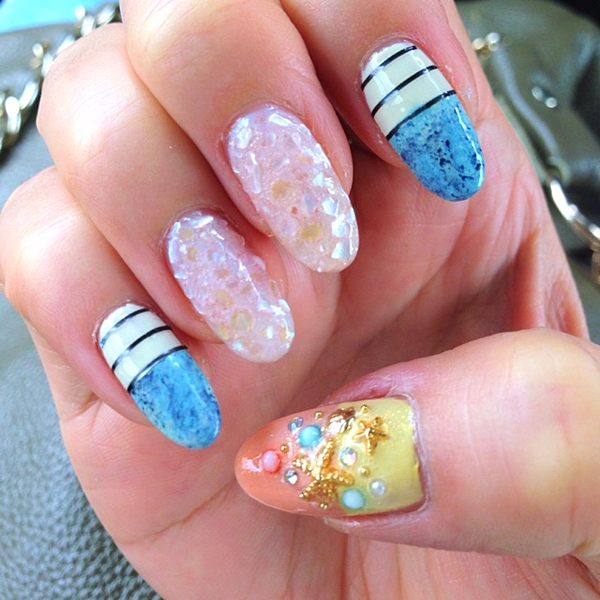 水面ネイル、海ネイルとも呼ばれるこのデザイン。