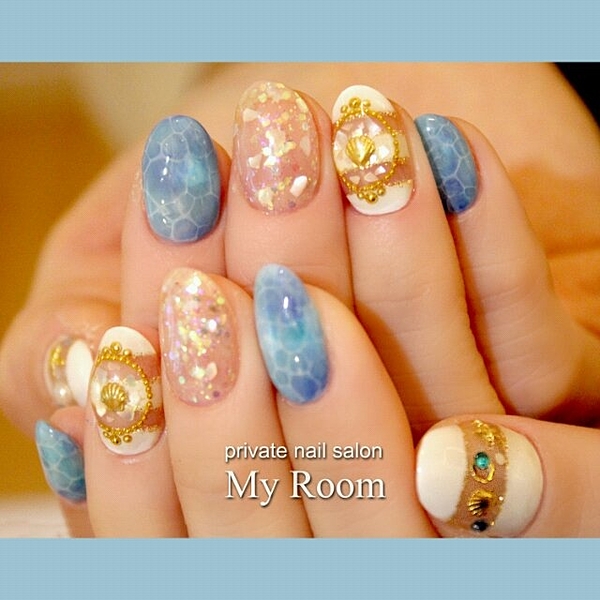 大人気♡きらきら夏のシェルネイルデザインカタログ