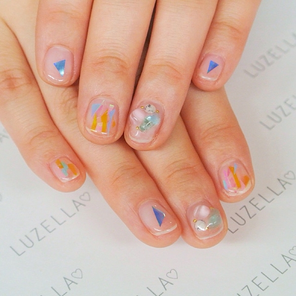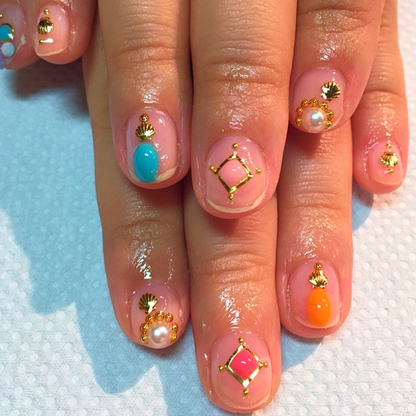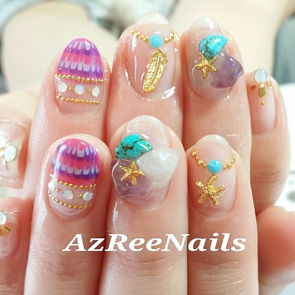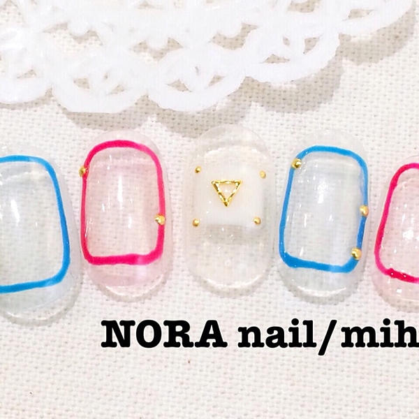 夏らしいクリアネイルデザイン。