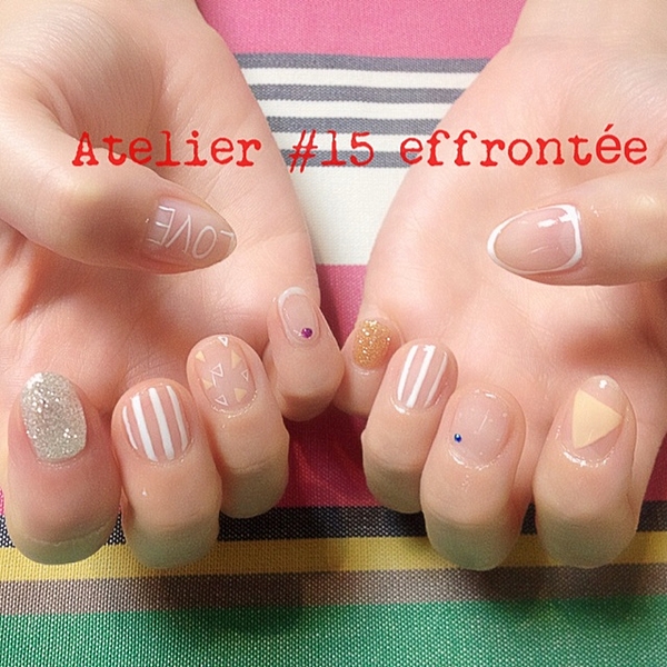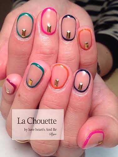 囲みネイルの真ん中にちょこんと