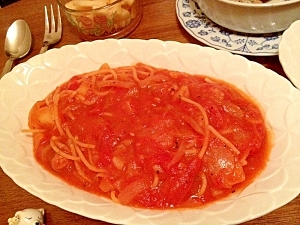 楽天レシピ:「余ったポトフをリメイク★トマトスープスパ 」より
