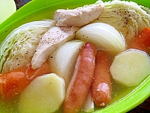 楽天レシピ:「炊飯器のみで作るシンプルな味付けのポトフ 」より