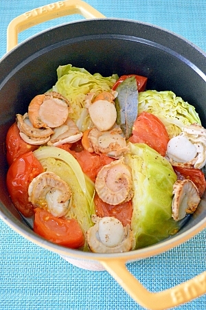 ストウブ鍋で水無し☆春キャベツと帆立のポトフ