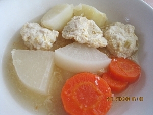 小さなお子様も食べやすい♪肉団子のポトフ。肉団子は大きくも小さくも出来るので、食べる人に合わせて作りましょう♪