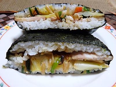 楽天レシピ:「とんかつ&キャベツのおにぎらず 」より