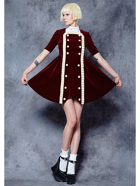 ゴシックな雰囲気漂うベロア調のワンピース。