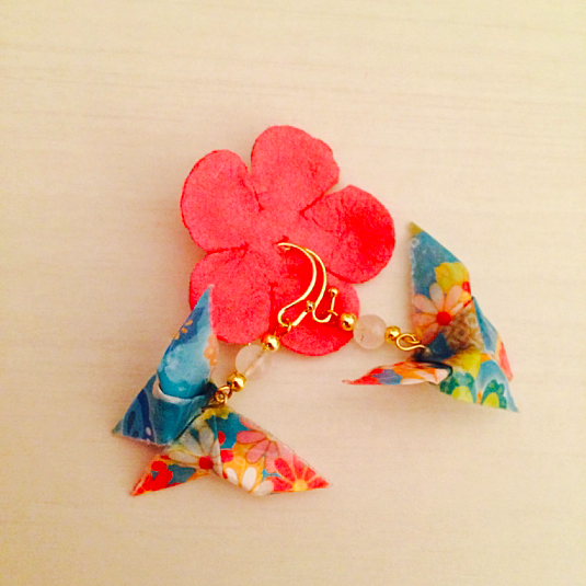 折り紙ピアスは、純和風。