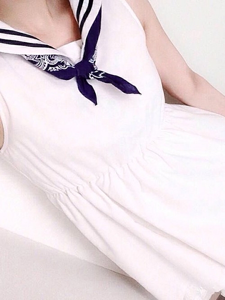 セーラー服風ワンピースにバンダナをスカーフ代わりに投入するだけで、がらりとマリンテイストになります◎