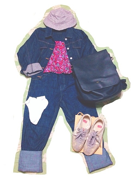 ブルーでまとめたコーディネートが素敵♡
