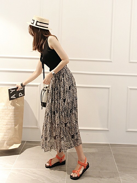 細かいプリーツがはいったロングスカートがなんとも夏っぽさ全開♡