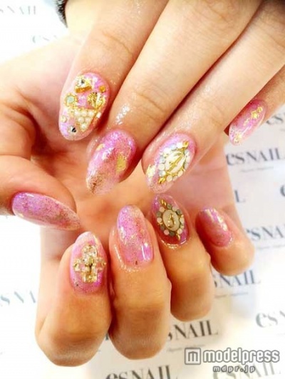 甘すぎるピンクカラーでも、ラメやフィルムと合わせて絶妙な色合いに。爽やかで夏らしいピンクネイルの完成です。