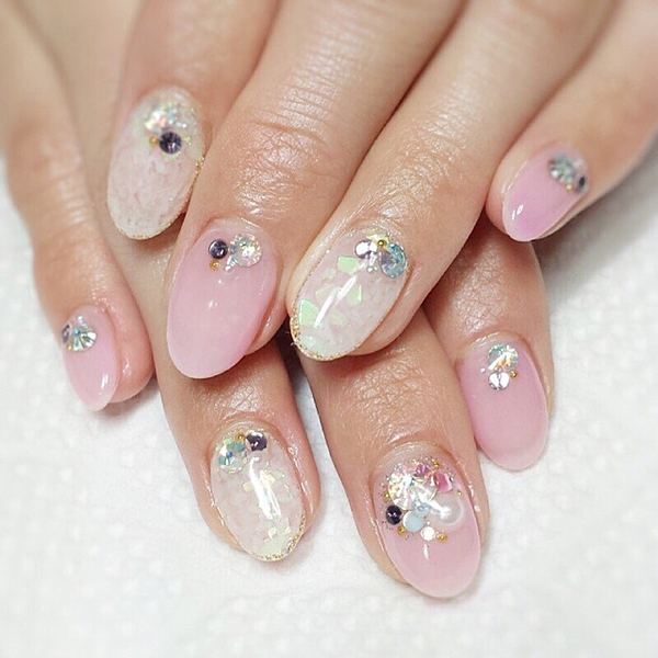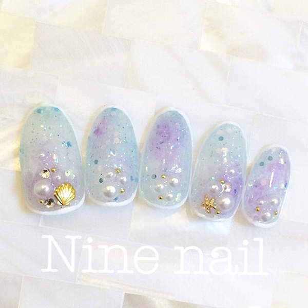 夜空に美しく輝くオーロラは一生の憧れ。そんな幻想的なオーロラをあなたの指先に描いてみませんか?淡いパステルカラーをいくつも重ね、キラキラ輝くホログラムやネイルストーンを上からON!一際輝くオーロラネイルでゆめかわいい世界をネイルに♡
