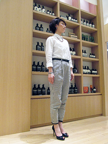 ストライプパンツも着回しができる
