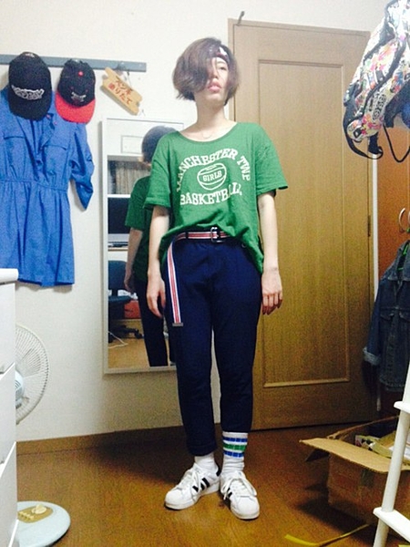 スニーカーに緑をもってきても崩れないバランスがすごいです。こんなコーデしてみたい…