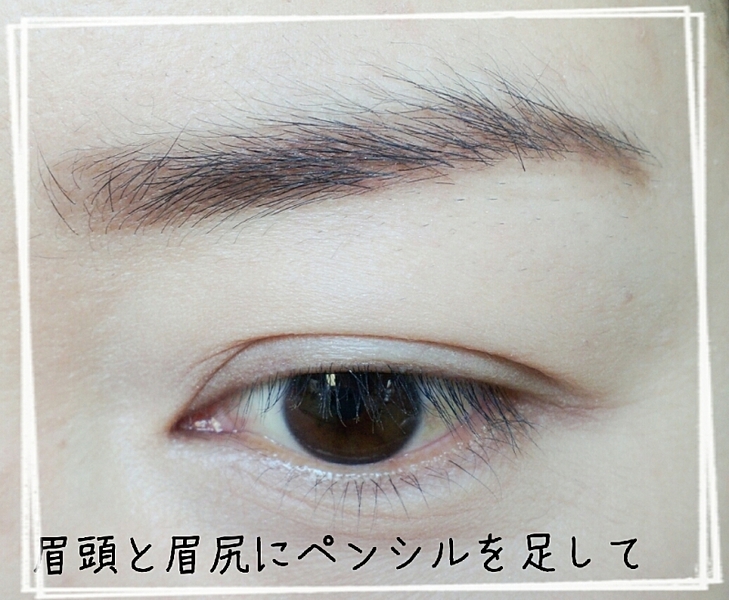 ペンシルを使って眉頭と眉尻を描きます