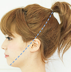 あごと耳を結ぶラインの延長線上で髪を束ねて結ぶのがベスト!