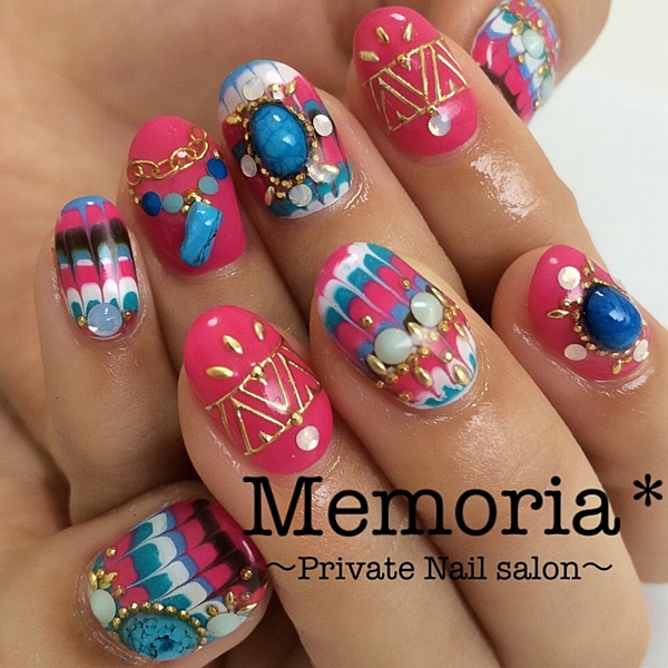 ポイントで入れているエスニック柄が