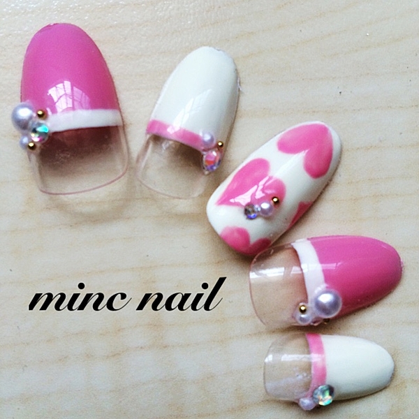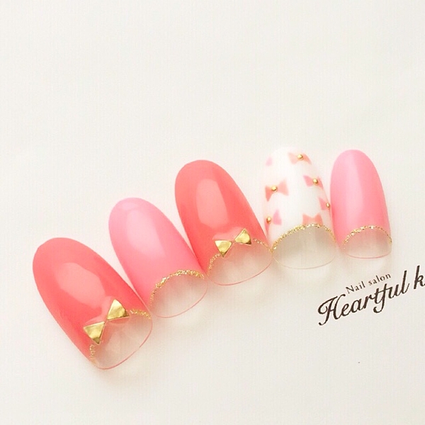 ハートを根元に1つのせても、小さいラウンドを並べてりぼんにしても可愛い♡