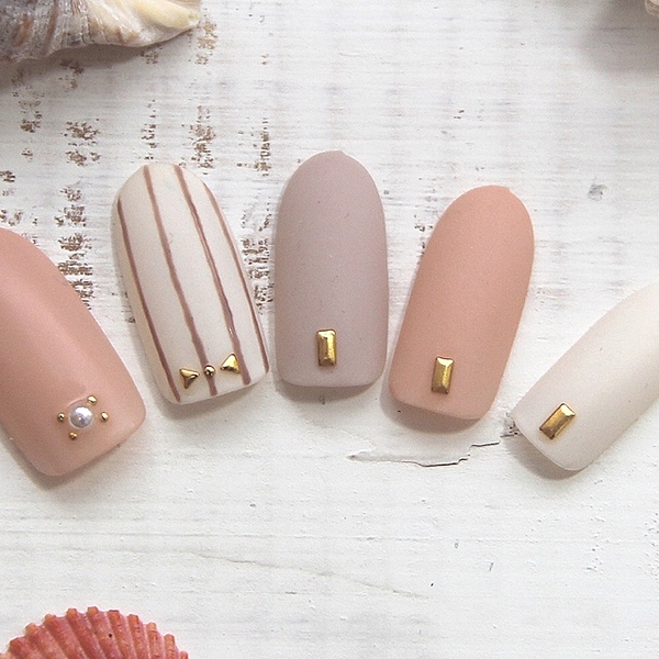 ゴールドのスタッズを1つずつのせて、シンプルきれいめにまとめています♪