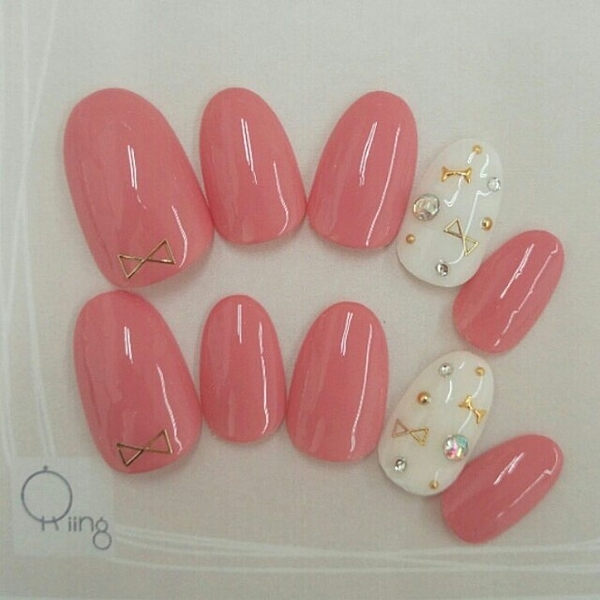 シンプルに根元に1つのせれば、上品な女の子らしい指先を演出してくれます♪