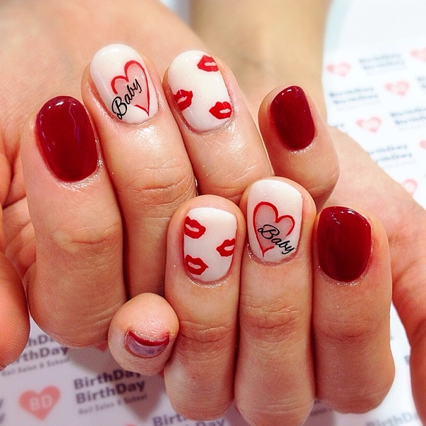 赤、ピンク、ホワイトでまとめたガーリーネイル
