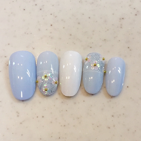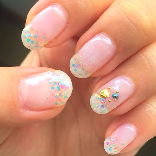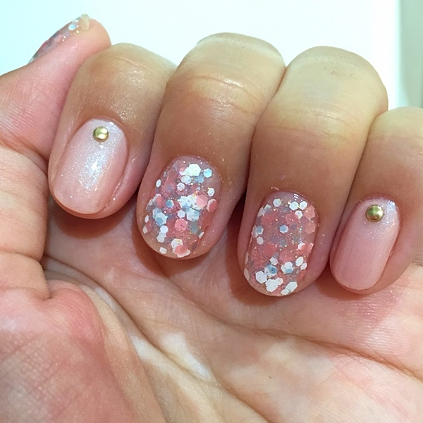こちらはホワイトベースにカラフルなラメが入った珍しいポリッシュです。全体に塗るとオフィスでは使いづらいかもしれませんがワンポイントで取り入れてみてください。
