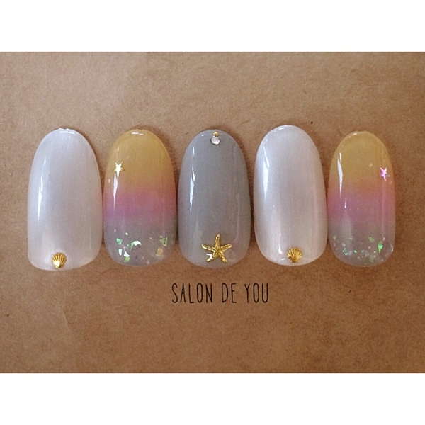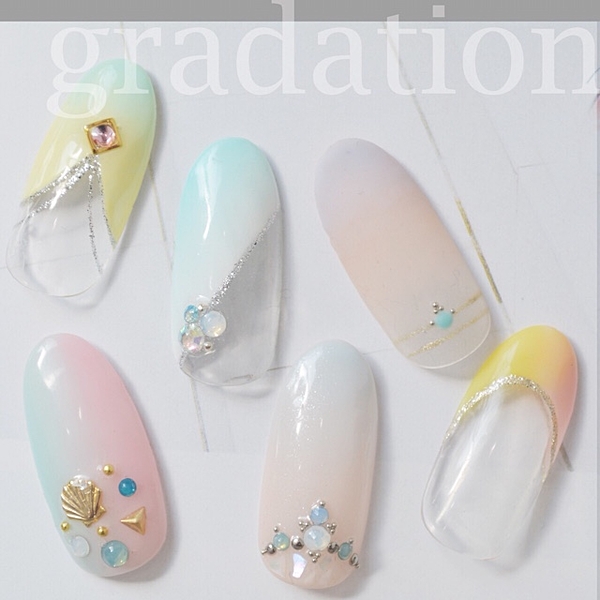 たくさんのカラーを楽しめるから、グラデーションネイルででかけましょっ♡