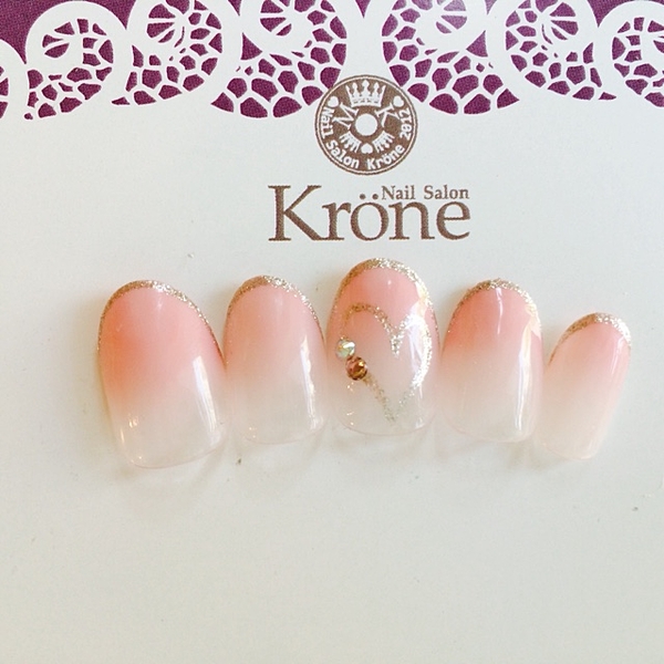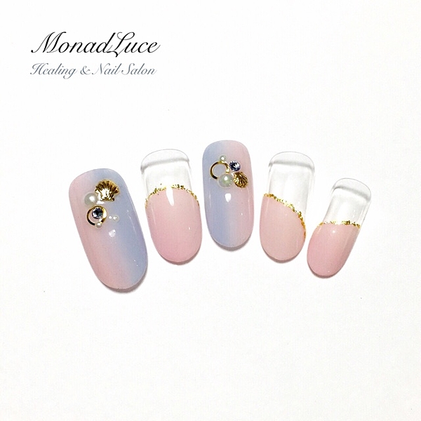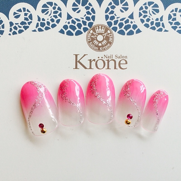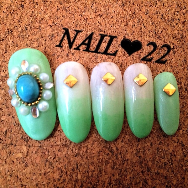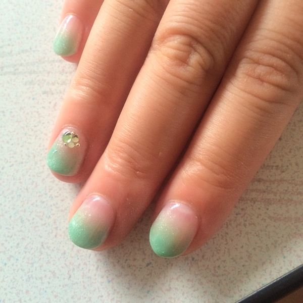 1色のグラデーションネイルにはラメとストーンでワンランク上げる♪