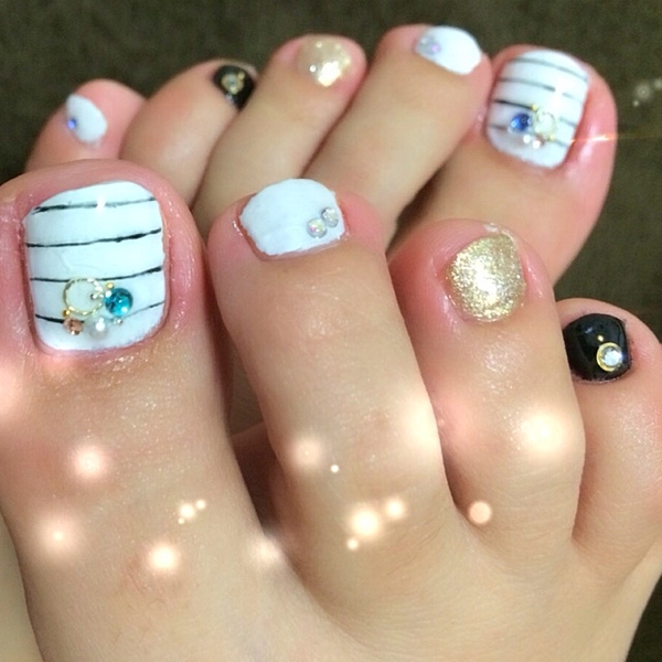 ビジューが付いてるのでシンプルフットネイルでもOK
