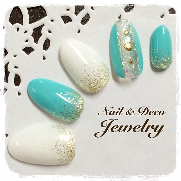 根元にのせた貝殻やシェルパウダーがオシャレです♡