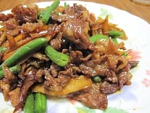楽天レシピ:「牛肉とごぼう・椎茸の甘辛炒め (我が家の味) 」より