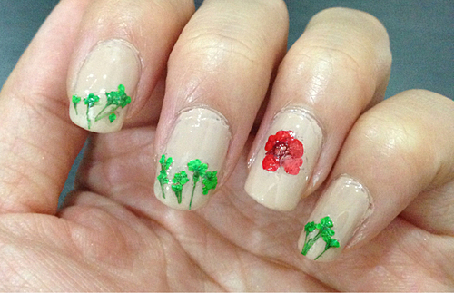 ネイルに本物のドライフラワーを閉じ込めましょう。
