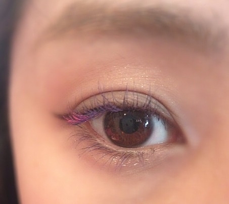 カラーマスカラを綺麗に見せるにはまつげの上側からも塗ることがポイント◎