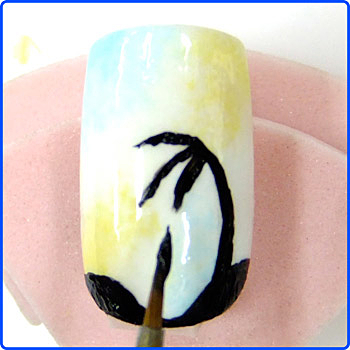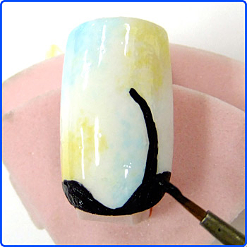 硬化していないクリア+ホワイトの上から細筆やドットペンを使ってクリアジェルをランダムに落として行きます。ジワジワとクリアジェルが広がって行きます。適当な模様になったらライトで硬化して下さい
