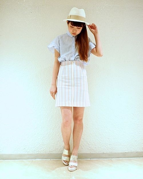 スカートを長めにするとカラフルでも子供っぽくならない*