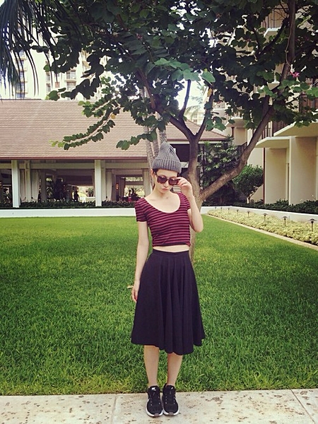 サイドが深くスリットが入っており、カットソーとのレイヤードがオススメです。張り感が今季っぽくモードなコーディネートにはまります。