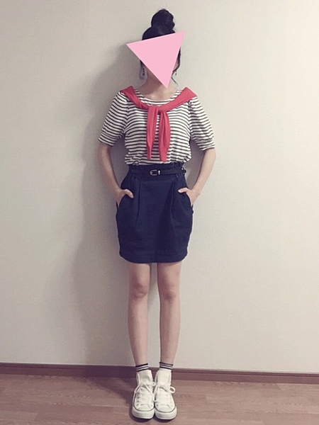 形が綺麗なので子供っぽくなりすぎず着れそう!タイトなシルエットがスタイルアップにも◎