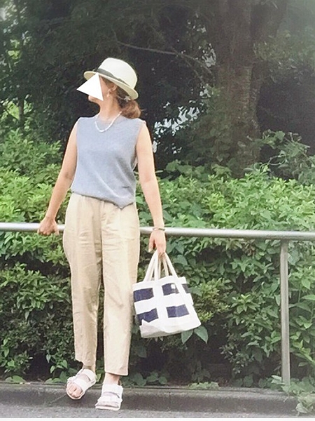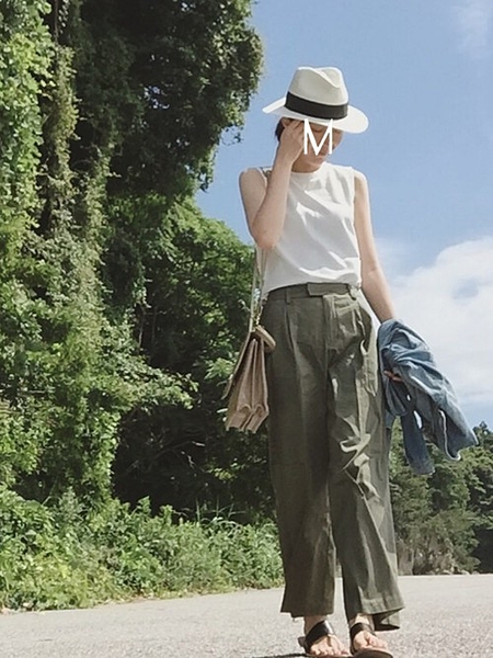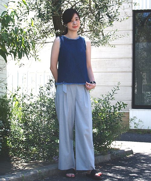 ワイドパンツ×ノースリーブの