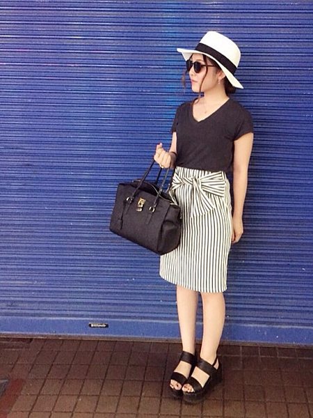 ブラックのミディ丈スカートは細みえ!