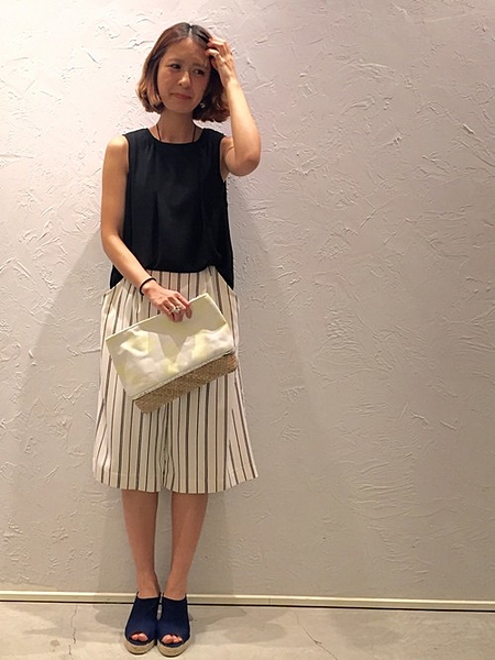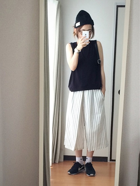ストライプのワイドパンツで着やせ効果絶大♡