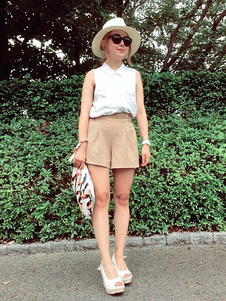 ハイウエストショートパンツはベージュで大人っぽく♡