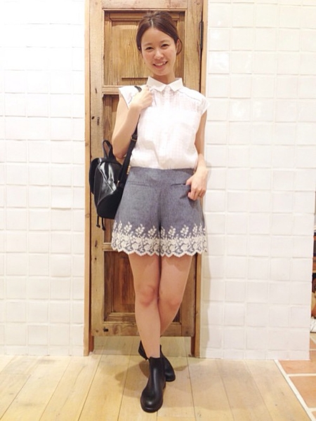 ブラックのハイウエストショートパンツはとっても着やせ効果が!
