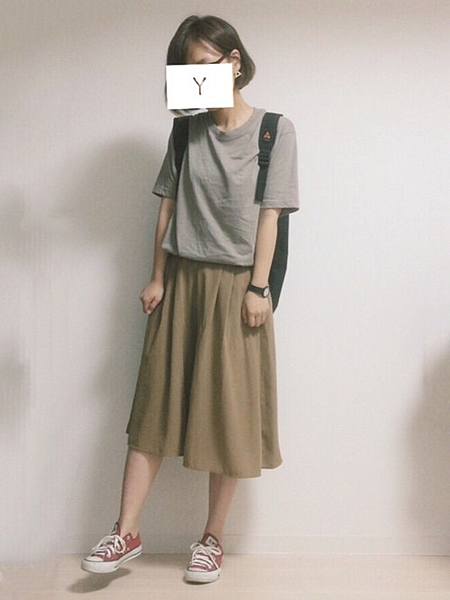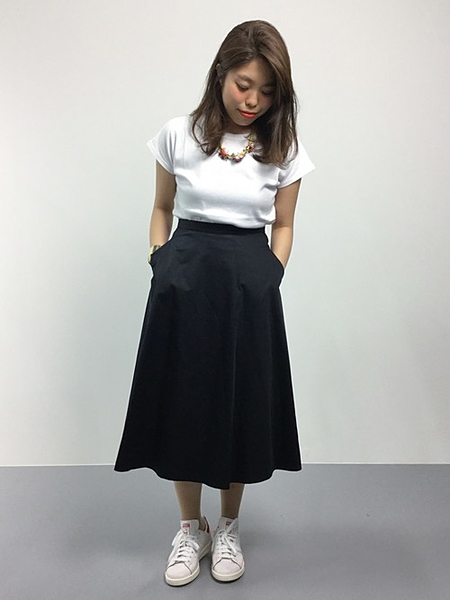 気になるお尻を隠すにはミディ丈のフレアスカートがおすすめ◎