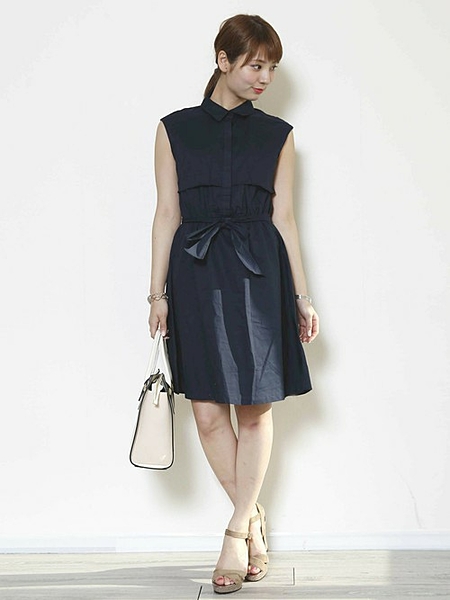 着やせ効果絶大なネイビーもウエスト部分にリボンが付いていてメリハリが◎