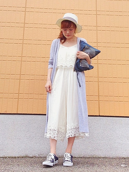 中に着たレースのオールインワンと相性抜群なロングカーディガン!
