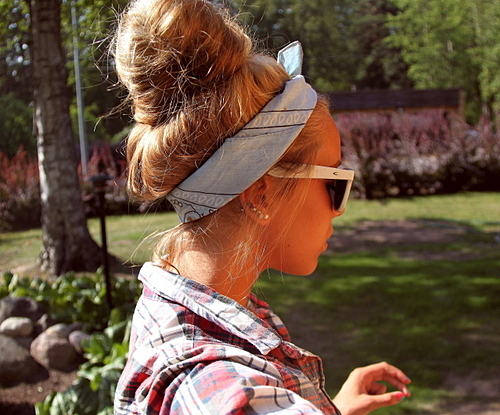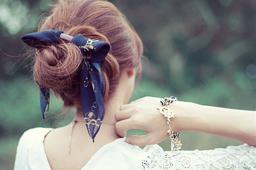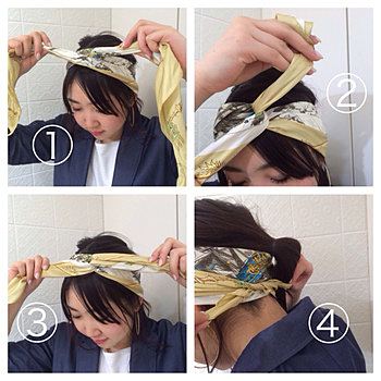 お気に入りのスカーフをヘアバンダナ風に〇