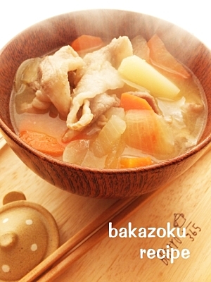 楽天レシピ:「豚こまのお味噌汁 」より