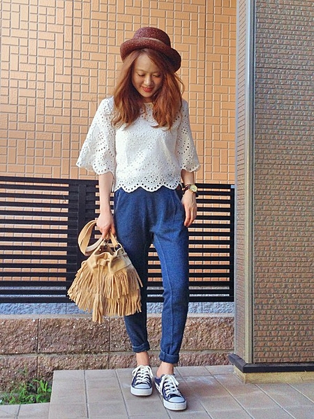 デニム×スニーカーのカジュアルコーデも