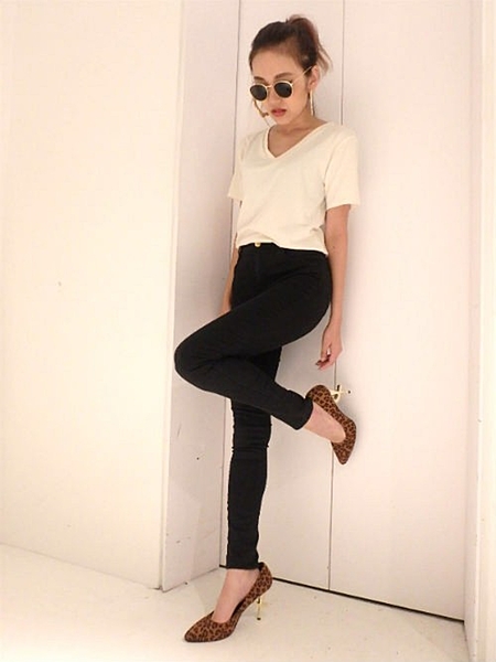 Tシャツ×スキニーパンツのコーデも